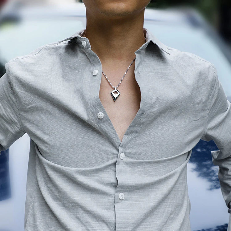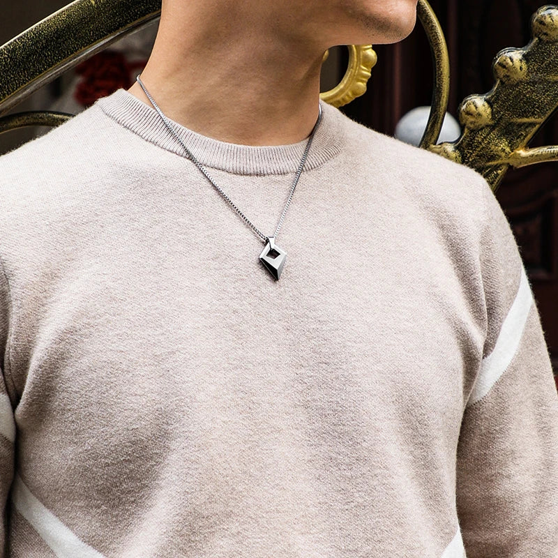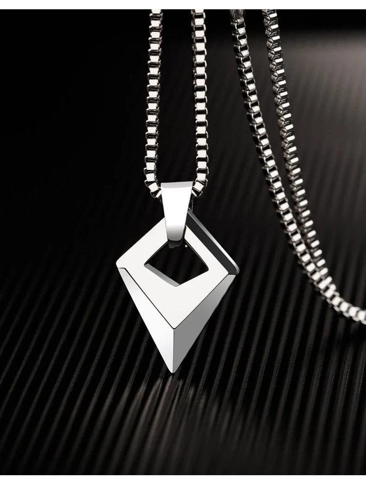 Get inspired by cutting diamonds - this geometric pendant features precision-cut facets that create stunning light reflection and visual depth. The angular design symbolizes strength and determination, perfect for the modern man who values both style and substance.