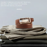 This isn't just a belt – it's a statement of quality and style. The smooth genuine leather feels luxurious against your skin while the automatic buckle mechanism eliminates the hassle of traditional belt holes. Simply slide the belt through and the mechanism locks securely in place.